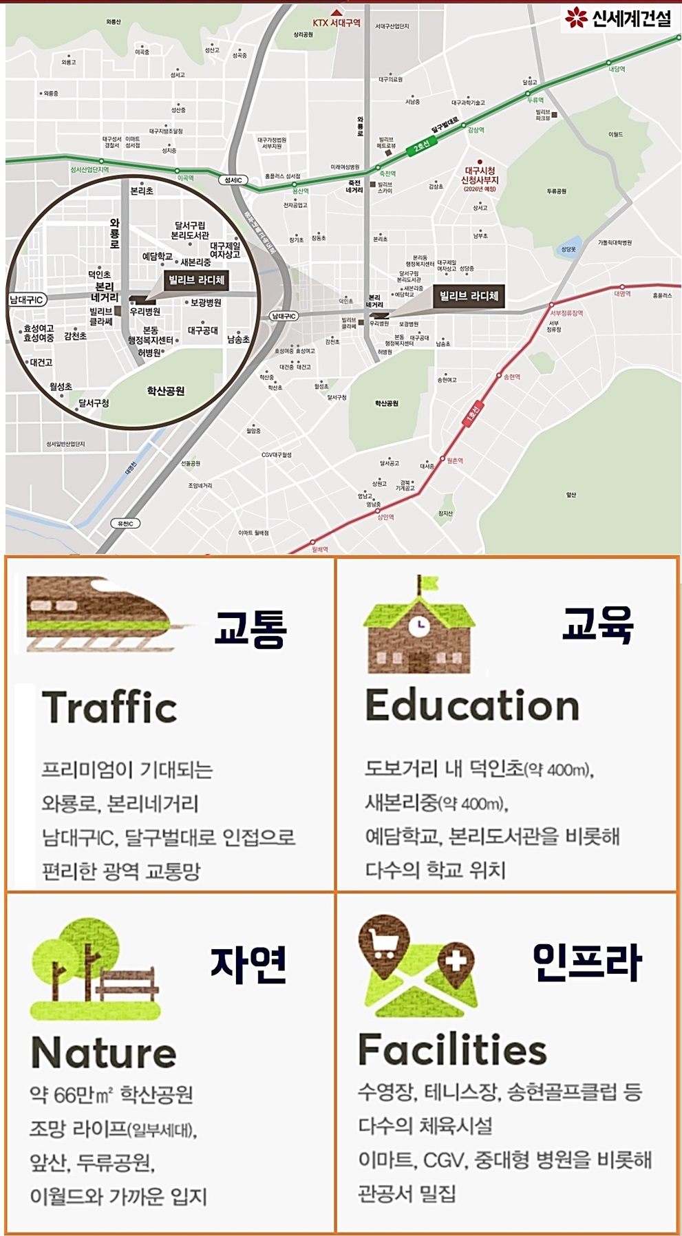 대구신세계빌리브라디체   현장위치: 대구 달서구 본동 760번지   |   대구신세계빌리브라디체 모델하우스 주소: 대구 달서구 월성동 1874번지   |   대표번호 1688-3706